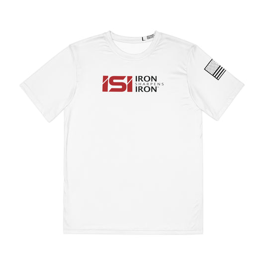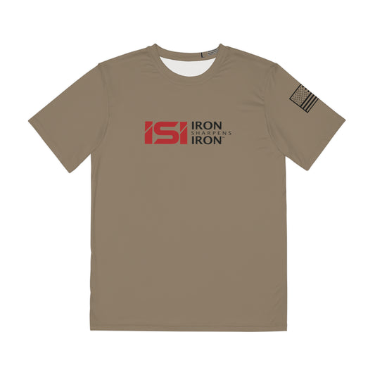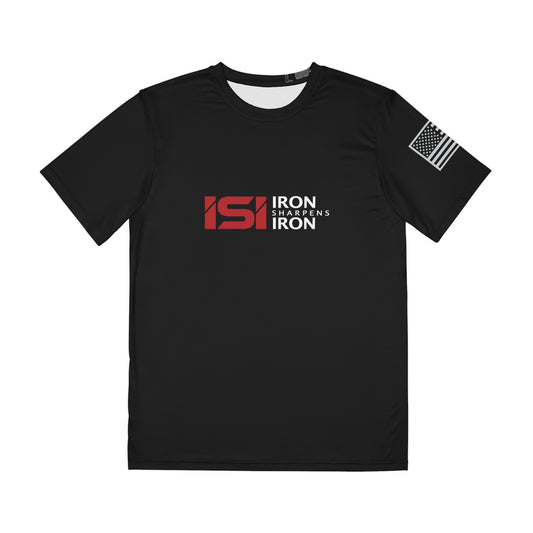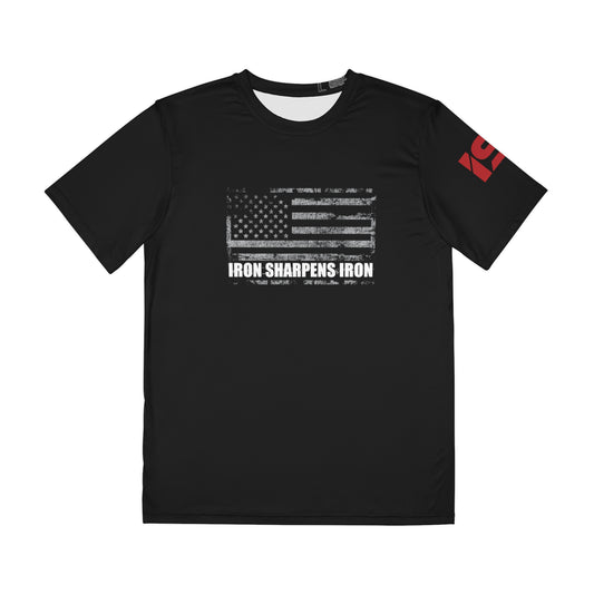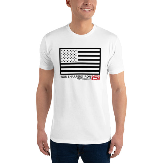 Iron Sharpens Iron Distressed American Flag with Sleeve Print - Fitted Tee